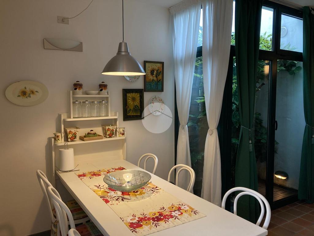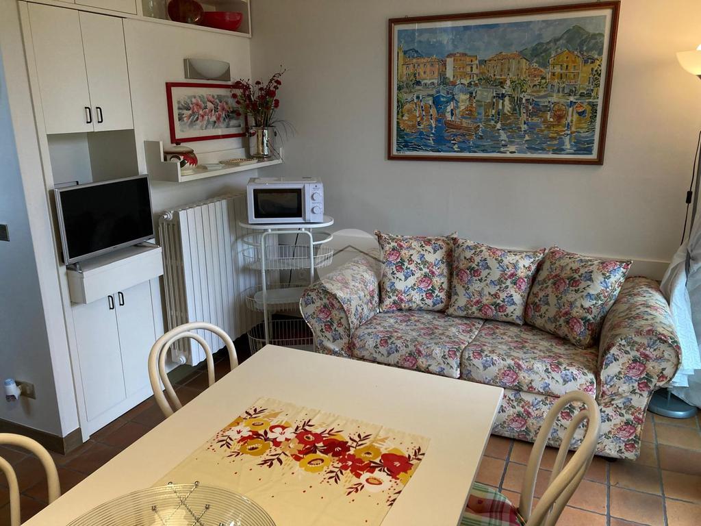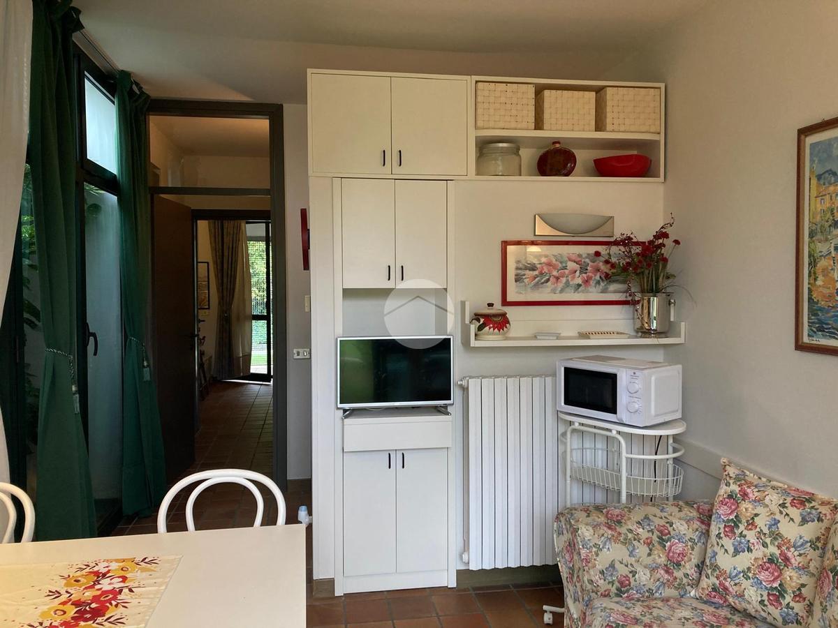 Dal giardino si accede alla zona giorno del bilocale composta da angolo cucina e divanetto. Zona notte con camera matrimoniale, bagno con doccia. Ripostiglio con lavatrice. Il canone include le spese condominiali, sono richiesti € 100 al mese di anticipo utenze che verranno conguagliati al termine della locazione. € 130 pulizie finali.