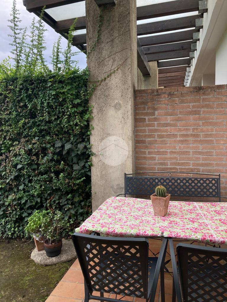 Iseo, vicino al centro del paese, in bel contesto residenziale circondata da parco, bilocale al piano terra con portico giardinetto e posto auto scoperto.