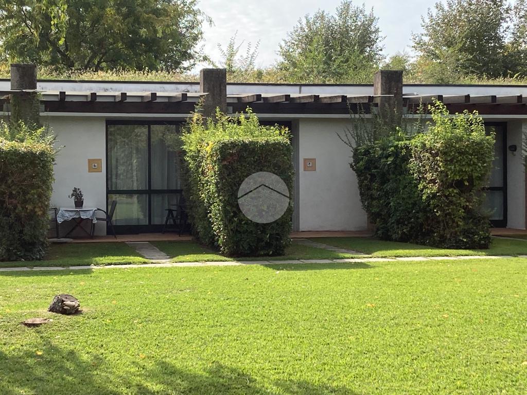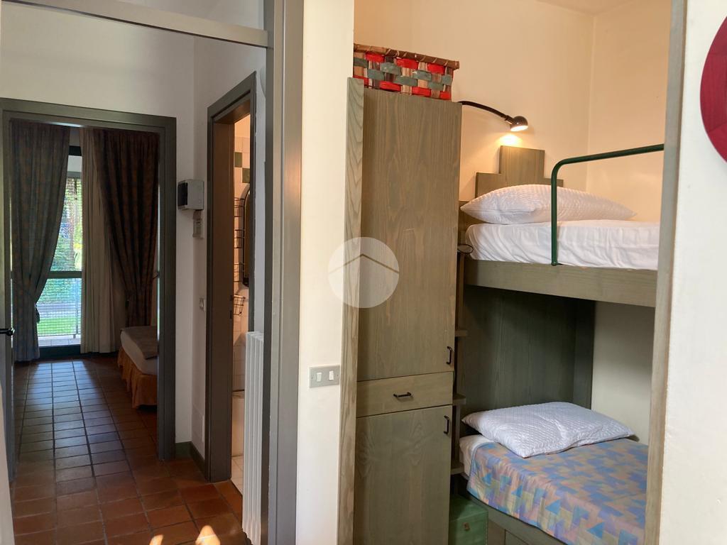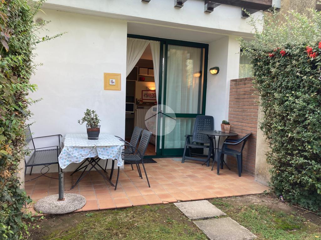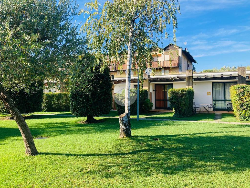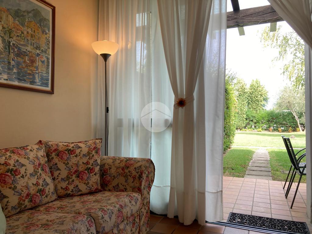 Iseo, a poca distanza dal centro del paese, vicino al lago, all'interno di un complesso turistico ricettivo con parco e piscina, bilocale al piano terra con portico e posto auto esclusivo.