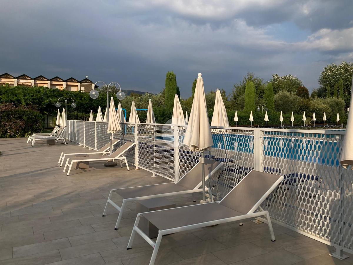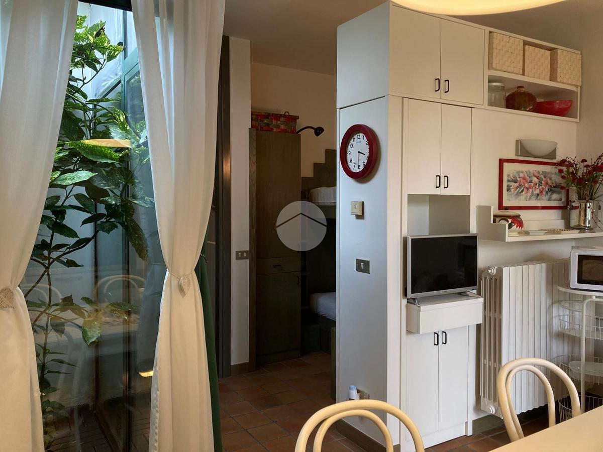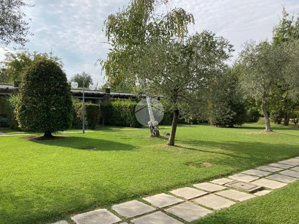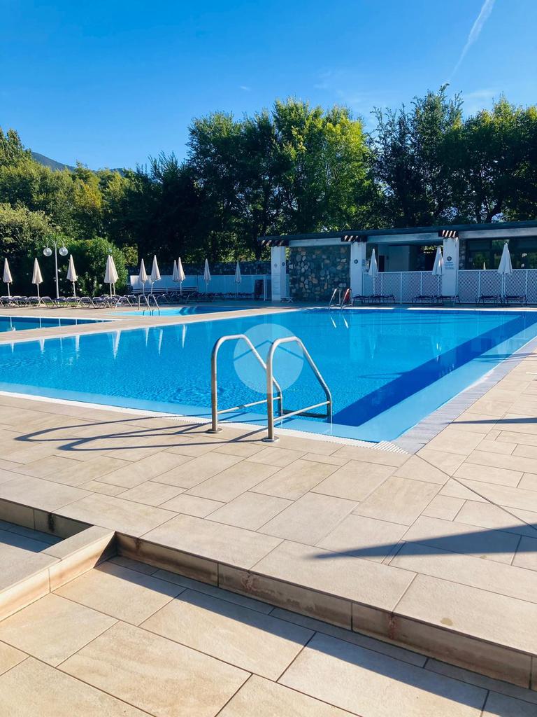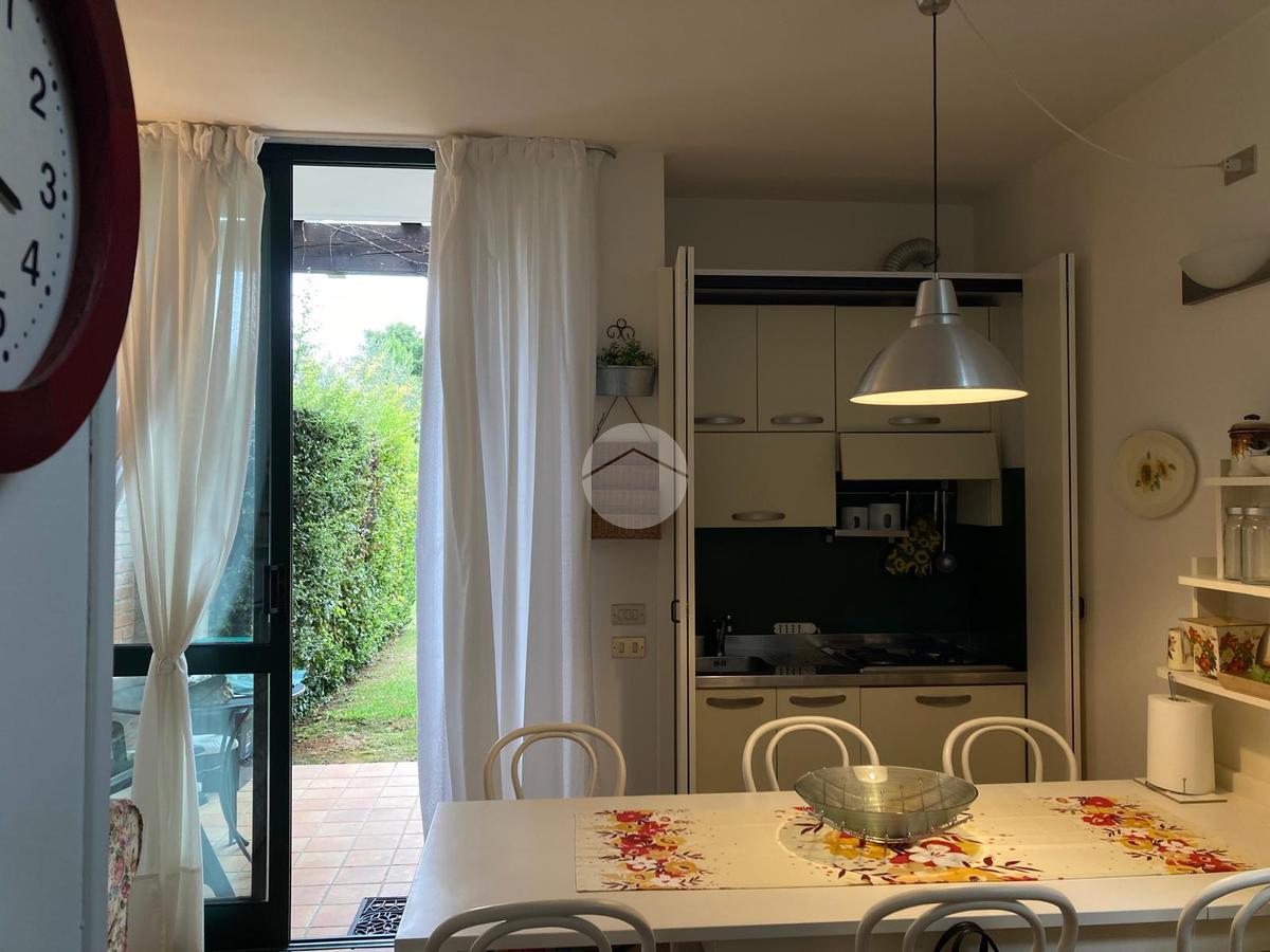 Iseo, a poca distanza dal centro del paese, vicino al lago, all'interno di un complesso turistico ricettivo con parco e piscina, bilocale al piano terra con portico e posto auto esclusivo.